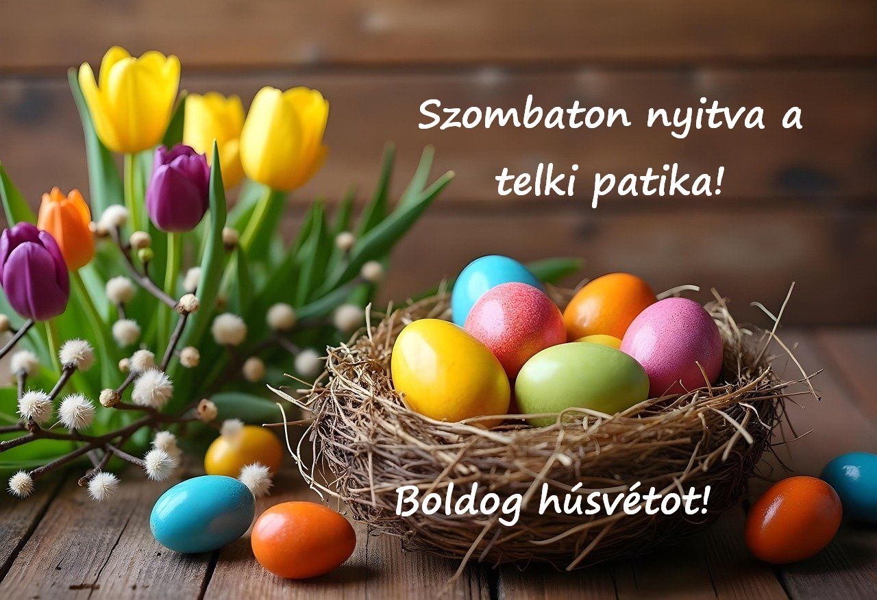Tájékoztatjuk Tisztelt Vásárlóinkat, hogy patikáink - Telkiben és Budajenőn - a húsvéti ünnepnapokon (2026. április 3-án, pénteken, valamint április 6-án, hétfőn) zárva tartanak. Április 4-én, szombaton (a telki Ágnes patikában), valamint április 7-től, keddtől (Telkiben és Budajenőn egyaránt) a megszokott nyitvatartással várjuk Önöket!